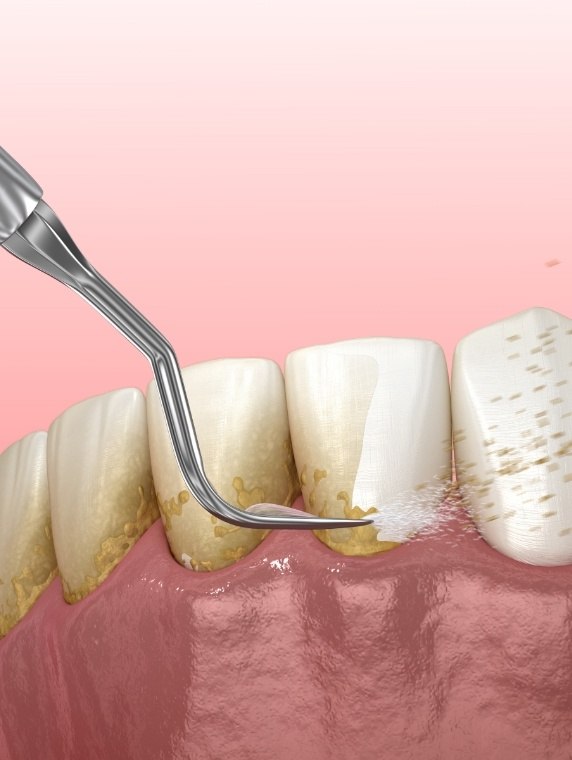 Referred to as deep cleaning, this two-step process requires removing hardened plaque and tartar to encourage healing and improve gum health. Scaling involves using a specialized dental instrument to remove harmful particles from above and below the gumline, while root planing is the smoothing of the tooth roots to minimize reinfection in the future and ensure gum tissues reattach to the teeth.